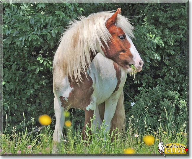 What a breathtakingly beautiful, blue eyed Gypsy Cob Pony you are, Clive! Your sparkling, ice blue eyes; your long, flowing mane; your coloring and markings are simply gorgeous!!! And not only are you beautiful in looks, but keenly intelligent, curious and charismatic, wise beyond your years! You truly are the complete package, Clive, perfection on 4 hooves! How lucky your lady is, having a best friend as special as you to call her own! You're a gem!