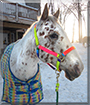 Dearest Johnny Depp, what a beautiful Netherland Dwarf Rabbit horse you are! You are so pretty with that speckled coat and that sweet face with those lovely big eyes. How nice to see you close together with your dear person. And what a touching and uplifting story you have to tell! You were scared of everything when she first got you. You were skittish and wouldn't let her catch you or groom or saddle you. And then you got sick and spent a while in quarantine. She gave you the care and love you needed, and you've progressed beautifully. Now you love running and jumping with her doing all kinds of tricks! You and she love each other dearly, don't you. What a wonderful love-filled home you share!