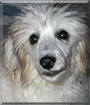 Dearest Cody, what a beautiful Chinese Crested Powder Puff you are! You're the first of your breed I've met, and you are adorable. What a sweet face you have! You are young and full of energy, and you make your dear people smile with your antics. You're smart and know a few tricks, and you get into mischief when bored. Your people say you may look like an angel, but you don't act like one! You and they all love each other very much, don't you. What a wonderful love-filled home you share!