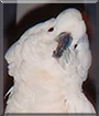 Dearest Dakota, what a beautiful Mollucan Cockatoo you are! Those white feathers are gorgeous, and what a sweet face you have with your head cocked there and your lovely dark eyes peering straight out. You have the most delightful personality, too. You're kind, gentle and very loving, and also very talkative. And you love to give kisses to people! You put everyone who comes up to you in a happy cheerful mood. You and your dear dad Dan love each other very much, don't you. What a wonderful love-filled home you share!