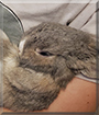 Oh my gosh, dearest little Cassie, you are beyond adorable! What an absolutely sweet, precious opal Netherland Dwarf bunny you are. It is so touching and heartwarming to see you nesting in your dear person's arms there. You look like the most comfortable, content little bunny ever! You absolutely love people and love being held. You're unusual that way for your breed! (Your sister Bella is more typical, definitely a no touch bunny.) You are your dear person's first bun bun, and you and she love each other very much, don't you. What a wonderful love-filled home you share!