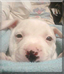 Dearest Lilah Jayla, you are utterly adorable! What a beautiful young lady you are, especially with that mark on your nose and mouth like a big kiss you either just got or are about to give. You're a growing girl now, almost four months old, and you're full of energy, making your dear Mommy smile with all your antics. You have great ambitions, don't you: ".. when I get bigger, I want to be the best dog my mommy ever had." I'm sure you will do just fine at that!