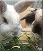 Dearest Mopsy and Fluffy, you are both adorable! What a beautiful, phenomenal pair of bunny sisters you are. You both have lovely personalities, always wanting pats and food, and you're getting them from your loving and beloved people. They adopted you both from the same litter ten years ago! Now you are slowing down some with age, but you're still hopping around 10 years later. You are both living the good life with your dear family, aren't you. You and they all love each other very much, don't you. What a wonderful love-filled home you share!