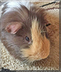 Dearest Arnold, you are adorable indeed! What a beautiful little Guinea Pig you are, with that colorful coat and that sweet face with those lovely dark eyes. You are full of energy and make your dear person smile with your antics, such as jumping and running in your cage when you're bored, or letting him/her know you're hungry by jumping on the roof of your little hut in your cage. You and she/he love each other very much, don't you. What a wonderful love-filled home you share!