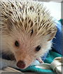 Dearest Harry, you are absolutely adorable! What a precious little Hedgehog you are. That trademark spiky coat and that sweet face with the lovely big eyes are gorgeous. And what a delightful personality you have, too! You love to go exploring around your house and burrow yourself in dark places and snuggle up in some fleece or anything warm. You and your dear young person love each other very much, don't you. What a wonderful love-filled home you share!
