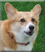 Dearest Foxy, you are adorable! Such a pretty Pembroke Welsh Corgi, with that fluffy soft-looking brown and white fur and that sweet face with those lovely dark eyes and that big smile! You have the most delightful personality too! You are full of energy and make your dear people smile with your antics. You are very affectionate and very spoiled. You even have your own seat at the dinner table and eat a dog-safe serving of your people's dinner.. no dog food for you! You and your dear people and I'm sure the kitty too (even though you chase her into the woods because you want to be queen) all love each other very much, don't you. What a wonderful love-filled home you share!