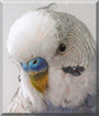 Sonny is a darling baby who loves a cuddle, kiss and belly rub. He has been known to snuggle in pajama pockets and robe pockets. He likes to lie on his back in our hands and let us kiss and rub his little tummy. He gets his kitten nickname because he acts a lot like one, snuggling up to us and letting us stroke his fluffy feathers.