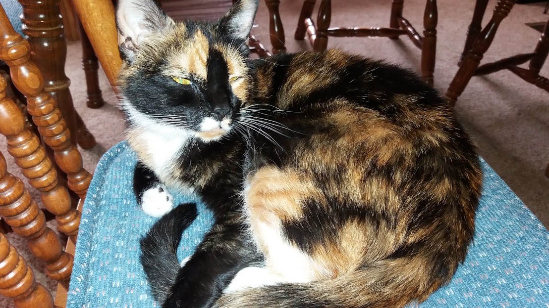 Next, a Domestic Shorthair, dignified Miss Kitty; a dilute tortie: ancient, but nonetheless still spunky.