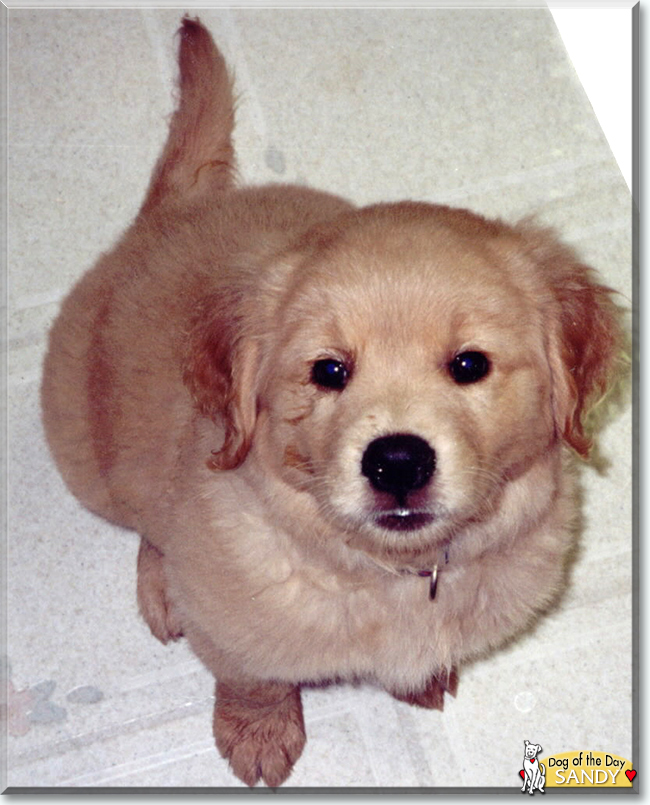 Be still my Retriever loving heart!!! How pawsitively precious are you!:D Who could resist that sweet face, those huge, brown, love filled eyes? Not me!:p True to your beloved breed, not only are you beautiful on the outside, but in personality and heart as well, just as sweet and loving as can be, "golden" to the core! And of course, like most Retrievers, you're a ball/stick fetching, water loving fanatic! (My Retriever, Peach, does that apres swimming mud/sand roll too!:rolleyes::D) You truly are perfection on 4 paws, Sandy, simply the best! How blessed your family is, having a joyful, sweet and loving furkid, a source of never ending joy, love and laughter in you! The happiness you bring to their lives, each and every day, is truly a priceless gift!