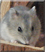 Dearest Tic Tac, you are adorable! What a beautiful, precious little hamster you are, with that soft-looking grey fur and that sweet face with the lovely dark eyes. And what a delightful personality you have, too. You're so friendly, and you don't bite! You're fast and nimble, sleeping during the day and running in your wheel in the evening. You have a nice big cage, which you check out carefully after your dear young friend has cleaned it. You both love each other very much, don't you. What a wonderful love-filled home you share!