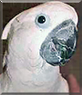 Dearest L.E., what a beautiful Umbrella Cockatoo you are! You are absolutely stunning in black and grey and white feathers that pick up a bit of a blue tinge in the light. You have the sweetest face with that dark-grey beak and those lovely big black eyes.