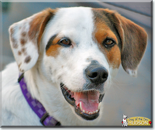 What a handsome, sweet and charming, oh so happy boy you are, Hudson! Just look at that smile! And how lovely is your coat, your coloring and markings! At first glance I was guessing you might be part Lab and Beagle, but then there are those adorable spots!:D Well, just as your human says, no matter your breed blend for you couldn't be any more perfect if you tried, in looks, personality and heart; the quintessential "All American!" You truly are the the poster pup for doggie adoption, sweetheart, just as special as can be!