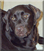 Dearest Kahlua, you are gorgeous! What a beautiful Labrador Retriever you are, with that sleek chocolate fur and that sweet, sweet face with those lovely big eyes gazing right at me. You have the most delightful personality, too. You make your dear people smile with all your antics and energy! You're very happy and playful and seem to believe you're still a little puppy. You're curious and at times mischievous ;). They say you can be a handful at times, but you're their special girl! You and they all love each other very much, don't you. What a wonderful love-filled home you share!