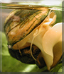 Dearest Gary, what an utterly adorable Snail you are! You are gorgeous indeed in that great photo, and thank you for sharing it with us. You have so many beautiful colors, and you look so very comfortably at home there in your giant brandy-snifter tank. You've made your dear person smile these last three and a half years with your antics, such as eating from his/her finger-tips. You live with betas Edwin and Ruben and Ruben's snail tank-mate Larry. Your person saw you at the pet store and had to have you! You and she/he love each other dearly, don't you. What a wonderful love-filled home you share!