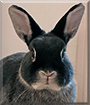 Dearest Bilbo, what a beautiful Netherland Dwarf Bunny you are! Your coat with the black and grey and white fur is gorgeous and looks so soft, and what a sweet face you have with those perky ears and long white whiskers and lovely big eyes. And what a wonderful story you have to tell! You are a rescue bunny, and we thank your dear people for choosing rescue. You live indoors with your bunwife, Toffee, and we thank your people again for keeping you safely indoors!