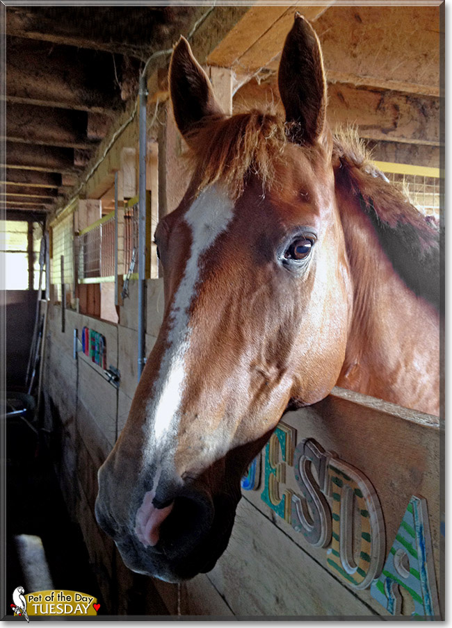 What a beautiful Quarter Horse you are, Tuesday. Congratulations on being Pet of the Day!