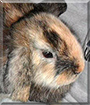 Dearest Daisy, you are absolutely adorable and precious! What a beautiful bunny you are, with that Calico-look-colored fur that looks so soft, and that sweet face with the cute lop ears and those lovely big dark eyes. We're so sorry your family lost their dear rabbits Buzz and Dolly, but thankfully Jessie bunny is doing fine, and the rabbit shelter gave you to the family to help fill the space and ease their grief. You and Jessie are getting along great! You groom her ears, and though she's the dominant one, you get first crack at the food. You enjoy being held only by your dear person. You and he/she and Jessie all love each other very much, don't you. What a wonderful love-filled home you share!
