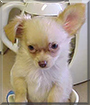 Twix loves everyone and, like most Chihuahuas, thinks he is much bigger than his dainty two pounds. And while he is posing in a tea cup, he assures us he's not going to fit there long! And we, of course, love him!