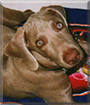 Oh, what a gorgeous Weimeraner you are, Gunther; beautiful inside and out; gentle to the core! You truly must be one extra special boy, Gunther, having been nominated by your Auntie for Dog of the Day honors! Then again, as she says, you belong to them all, the entire family! How lucky they all are, especially your little skin sister, all the children in the family and beyond, having a beautiful, gentle and loving best friend and protector, a full fledged furry family member in you! What fun they all are in for over the years to come, you and they growing together, sharing so many happy times, making memories to last a lifetime!