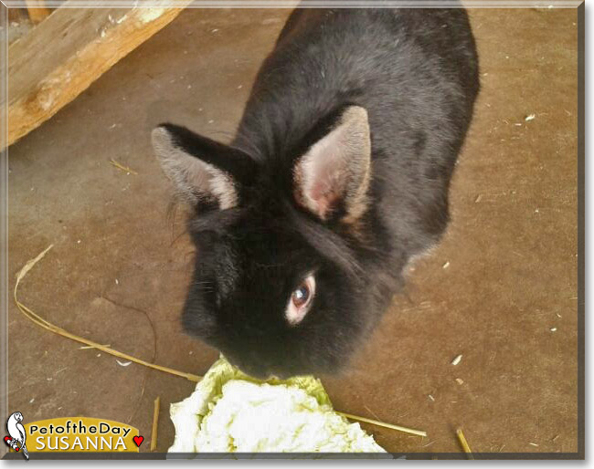 Congratulations, darling Susanna, on being chosen Pet of the Day for Thursday, January 9! We hope you and your dear person have been enjoying a fine celebration, full of fun and lovies and all your favorite games and treats, maybe a special serving of rabbit food, carrots, and corn!