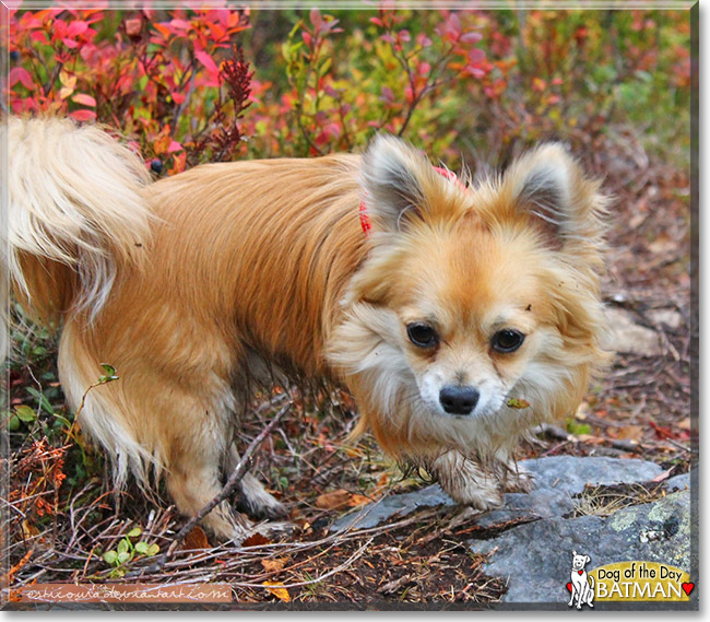 What a foxy wee Chi x you are, Batman, precious beyond words! Those HUGE brown eyes of yours are total heart-melters! But as beautiful a boy as you are, it's your BIG personality, your spunk and spirit, your fearless take on life that makes you SO extra special! Wet, muddy paws? No problem!:D As the saying goes, not every super hero wears a cape. Some come with long, flowing, golden colored coats and flooofy tails!:D