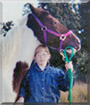 Dearest Prissy, what a beautiful Paint Horse you are! You are gorgeous with that brown and white coat and long white mane. How nice to see you with your dear young friend! She had wanted a horse from a very early age when she first found out what a horse was, and she's so glad you joined the family. You have the most delightful temperament, too. You enjoy playing with your Quarter Horse gelding friend Rowdy, running around the pasture, and pestering your family's other horse Babe. You and your young friend love each other very much, don't you. What a wonderful love-filled home you share!