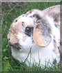 What a beautiful Lop bun you are, Josie! Your coat, your coloring and markings are gorgeous! I've never met a bunny with coloring as special as yours!:cool: And talking about special. How special are you, despite having lost a leg, enjoying every minute of your wonderful, carefree life to the max; playing in your garden with your bunny bud Jazz and wheeker pals Scully and BB, not a care in the world! And of course, soaking up all that human love showered upon you 24/7!:D What a trooper, what spirit!