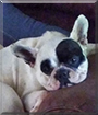 Dearest Minnie, you are adorable! What a sweet, precious French Bulldog you are, first resting so comfortably and then sitting up on the arm of your royal-purple throne, from which you rule your home. You are so cute in both of those great photos, and thank you for sharing them with us. You have such a delightful personality, too! Sometimes you act just like a bull, snorting and charging. You speak up when you have something to say, sounding like Chewbacca when it's time to go out to do your business. You're very affectionate and sweet, a little bossy at times, and you love to hug. You and your dear family members all love each other very much, don't you. What a wonderful love-filled home you share!