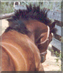 Dearest Koko, what a beautiful Morgan Mare you are! And what a great photo of you in one of your "mellow" moods. Your dear person had just taken your saddle off, and you were feeling frisky. You two got together when she was just five years old! You two have been through a lot. For years you went everywhere together, and you did anything asked of you, or at least gave it your all. You're a mother, having given your person four babies. Now you are twenty years old and have a degenerative bone disease, so you can no longer be ridden. You're being spoiled and taken care of as well as your person can manage. You roam the pasture and enjoy the apples he/she gives you. You two live in a beautiful special place, perfect for a wonderful special horse. You love each other very much, don't you. What a delightful love-filled home you share!