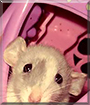 Oh my gosh, just look at that sweet little FACE! Dearest Korra, you are absolutely adorable, with that pretty-colored, soft-looking fur and that little pink nose. How cute you are peering up at me with those big dark eyes. And what a delightful personality you have! You're full of energy and make your dear person smile with your antics. You're playful, and you enjoy exploring and riding around in a shirt pocket. And you're a survivor! You had a terrible injury as a newborn. No one thought you'd make it, but you did! You have several rat housemates, and while your dear person loves you all, you're a special girl and will always have a spot in his/her heart. You love each other very much, don't you. What a wonderful love-filled home you share!