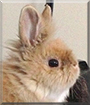 Dearest Binky, you are beautiful indeed! What an utterly adorable Lionhead Rabbit you are, with that fluffy light-brown fur that looks so soft and that sweet face with those perky ears and lovely big eyes. You've had some dental trouble, but I'm glad to learn your teeth have been fixed up. You're the bun-boss, but you're so cute you get away with it! You have fun with your dear "husbun" Basil, and you do, or try to do, everything he does.