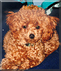 Dearest Chaos, you are adorable! What a cutie of a Toy Poodle you are, with that curly, soft-looking brown fur and that sweet face with those lovely big brown eyes. And what a delightful personality you have! You're special because you've earned your name! You aren't afraid of anything, and you're always looking for someone to play with, whether your mom Kizzy or your kitty housemate Zulu or your human mom or dad. You let your people know when you want some treats or love by putting your paws over your eyes to say "Please." You like to swim, run, and chew anything you can get hold of, including the down duvet! You make your dear people laugh with your antics and energy. You and they and Kizzy and Zulu all love each other very much, don't you. What a wonderful love-filled home you share!