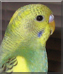 Dearest Stewie, what a beautiful budgie birdie you are! Your yellow and green feathers are so pretty, and you have such a sweet face with those lovely big dark eyes and that look as if you're smiling inside (and you probably are!). And what a nice story of how your dear person-to-be saw you in a pet store and couldn't stop thinking about you for the rest of the week! He/she finally went back to see if you were still there. You were, and Home you went, along with your little yellow playmate Sunny. You're full of energy, and you make your people smile with your antics, sitting on your swing, playing with your toys. You're also extremely protective of Sunny, even though you get mad when she sits in your spot. Your people love hearing you two chirping throughout the day. You all love each other very much, don't you. What a wonderful love-filled home you share!