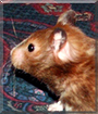 Deaerest Panda, what an adorable little Teddy Bear Hamster you are, so precious indeed! That brown and white coat is gorgeous and looks so soft, and what a sweet face you have with those long white whiskers and lovely big dark eyes. You and your dear young friend have quite a story to tell! She and her sister Kayley adopted you and your sister Oreo when you were about four weeks old. I'm so sorry Oreo has since passed away. Kayley got another hamster afterwards, a Dwarf Hamster named Princess, who unfortunately sometimes claws you. You have been through a lot, but life is good now, full of sleeping, eating, aggravating Princess, playing with your young friend, running in balls, and drinking water! You and your friend love each other very much, don't you. She says she's the luckiest kid ever to have such a cute, intelligent, loving, happy hamster! What a wonderful love-filled life you share!