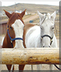 Dearest Misty and Dollar, what beautiful Quarter Horses you are! You're both gorgeous standing by that log, Misty with your grey-white coat and Dollar with your sorrel (? a new word for me!) and white one. And what a story you have to tell! Misty, you and another horse named Boomer joined the family last October. Then in November, Boomer died. The horse trader said he'd give your family another horse. He told them about a horse he'd sold who had been treated very cruelly. The sadistic buyer starved him and put the wrong shoes on which made the horse's legs stiff. The trader got him back back and turned him out to a pasture for a month. That was you, Dollar! Then he brought you (without stiff legs and with a full stomach) to your new family. You're fine now, though a little skittish, understandably. You two go together great, happy and healthy and treated like horses should be - with love! You and your dear people all love each other very much, don't you. What a wonderful love-filled home you share!