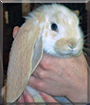 Dearest Kilo, you are Karismatic indeed! You're such a precious, beautiful English Lop Rabbit, only four weeks old! That fluffy light-brown-and-white fur is so pretty and looks so soft, and what a sweet face you have with those long, LOOOONG ears and lovely big eyes. You are looking forward to a wonderful life with your dear mother-to-be Chehaela, after your bunny-mother decides you're ready to leave the nest! You and Chehaela are getting acquainted, and you already love each other very much, don't you. Your favorite thing to do is "licking faces." What a delightful love-filled home you will be sharing soon!