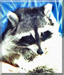Dearest Chubietta, what a beautiful Raccoon you are, and what an amazing story you have to tell! I'm so sorry your dear mother died when you were so young, but I'm so very glad and grateful that you were rescued by your dear family-to-be who raised you from infancy through you being able to survive on your own. You keep in touch with your family humans and dogs and cats, dropping in on occasion. (We hope your people will find some place to keep the chickens where you can't get to them!) You all love each other very much, don't you. What a wonderful love-filled home you share!
