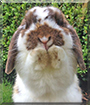Dearest Milo, what a beautiful bunny you are! So pretty with that soft-looking, colorful fur and the sweet face with those lop ears and lovely big brown eyes. You have such a delightful personality! Everyone who meets you falls in love with you. You're very affectionate, and you love cuddles and kisses. You really enjoy your food, even human-dessert treats! You and your dear person love each other very much, don't you. What a wonderful love-filled life you share!