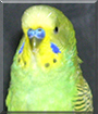 Dearest Sweetpea, what an utterly adorable Budgie you are! You're beautiful to see, with all those stunning colorful feathers and the sweet face with those lovely big dark eyes. And what a beautiful personality you have, too! You love to sing and make noise, and you've even been heard to say "silly little bird" on occasion. You love white things of all sorts, and you're very territorial about your cage, not standing for any fingers put nearby. Outside your cage, you're a flying and dive-bombing bird. You love hair, too, and you sometimes burrow your way under your dear person's hair, then sit there and make funny noises! You are full of energy and fun, and you make your person smile with your antics. You love each other very much, don't you. What a delightful love-filled home you share!