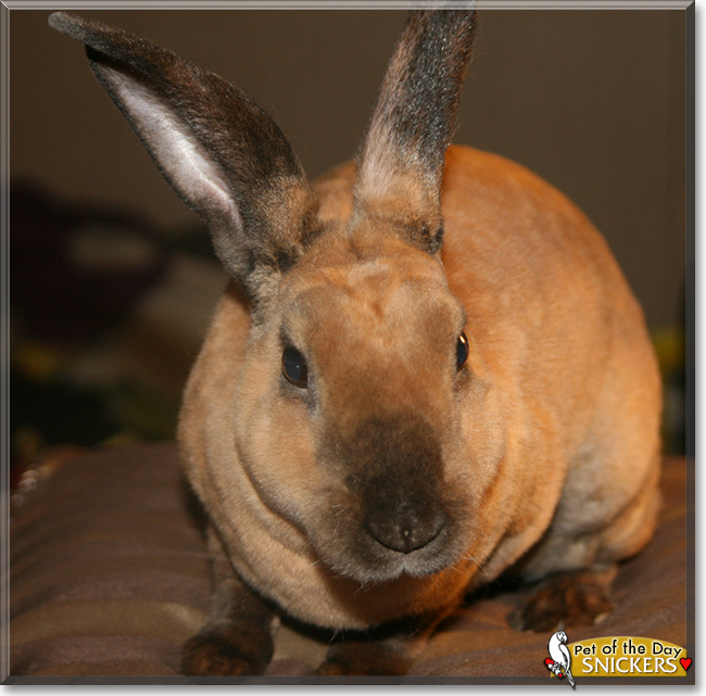 Dearest Snickers, what a beautiful Mini Rex Rabbit you are! That plush golden-brown coat is so pretty and looks so soft, and what a sweet face you have with those perky ears and lovely big brown eyes. You have the most delightful personality, too. You're full of energy and make your dear people smile with your antics. As your name suggests, to them you are "..our candy girl, our sweet and salty all at once friend." You love getting into things and playing tag, and you make sure your needs are known AND met. You all love each other very much, don't you. What a wonderful love-filled home you share!