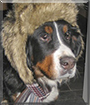 Dearest Bertha, what a beautiful Bernese Mountain Dog you are! You're so pretty in that great photo, and thank you for sharing it with us. That brown and black and white fur is gorgeous, and what a sweet face you have with those lovely big brown eyes. You're all ready for the cold weather with that warm scarf and fuzzy hat! You have a delightful personality, too! You love getting your breakfast and being stroked. And you love the winter and the cold temperature, as we saw in that terrific photo. You're very friendly, and you don't bite anyone. You bark when the doorbell rings, to scare away any unwelcome visitors. You're the big protector of your family! You and they all love each other very much, don't you. What a wonderful love-filled home you share!