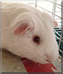 Dearest Snowy, what a darling little Guinea Pig you are! You're absolutely adorable with that long flowing white fur and that sweet, sweet face with those cute pink ears and lovely big eyes. And what a delightful personality you have! As your dear person says, you're "..the kind of snow anyone can like, even in summer!" You chew on your cage bars when you need some food or attention. You've worked out your own ways of communicating on such matters as when your water bottle needs refilling. You're very smart and very sweet, and you and your person love each other very much, don't you. What a wonderful love-filled home you share!