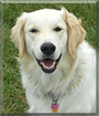 Dearest Moon, a.k.a. Tennessee Mountain Moonshine, what a beautiful lady you are! That pale-colored fur coat is absolutely gorgeous, and what a sweet face you have with that great big smile. You love to play "fetch" whenever someone will throw the tennis ball. You also love playing with soap bubbles and going to the beach. You're very gentle, everyone's friend when you're out walking. You are your dear family's second Golden, after their first Golden, Star, who was with them for 11 years. You and they all love each other very much, don't you. What a wonderful love-filled home you share!