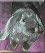 Dearest Elvis, you are absolutely stunning! What a beautiful Mini Lop Rabbit you are, with that fluffy, glossy grey fur and that sweet face with those lovely big dark eyes. And what a delightful personality you have! You are full of energy and make your dear person laugh with your antics, jumping and swirling round the garden, jumping into the bed for cuddles and kisses, chilling in the garden. You're there to give your person hugs and kisses, no matter the kind of day he/she has had. And you love to chase the dog to try and catch her. You're your person's rocking rabbit, and you truly live up to your name! You love each other very much, don't you. What a wonderful love-filled home you share!