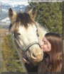 Dearest Iha Ble, you are absolutely phenomenal! What a beautiful Paint Horse you are, with that colorful coat and that sweet face with those lovely big brown eyes. And what a delightful personality you have, too! You're "more of a big puppy than a horse." You love attention from everyone, and you even go down to the bus stop to walk the kids home from school because they love you so much! Thank you for sharing those great photos of you and your dear young lady with us. You and she love each other very much, don't you. What a wonderful pair you make, and what wonderful times together you share!