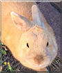 Dearest Basil, what a sweet, precious bunny you are! You are so pretty, with that fluffy fur that looks so soft and that sweet face with the perky ears and the lovely big dark eyes. You are your family's first rabbit, and your dear young person takes very good care of you. You've been together more than five years now! And what a delightful personality you have! You're very affectionate and playful and social. You know a good trick quite well: You'll jump, run up to your people, or stand on your two back legs to get a Nibble'O' treat. You run around or nudge your person's ankle when you want to play. You all love each other very much, don't you. What a wonderful love-filled home you share!