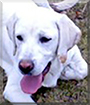 Dearest Rufus, what a beautiful young Lab fellow you are! You're so pretty with that white fur and that sweet face with the lovely dark eyes and what looks like a big smile (and probably is!). And what a delightful personality you have. You are full of energy and make your dear young friend smile with your antics. You have great fun playing together, and you love each other very much, don't you. What a wonderful love-filled home you share!