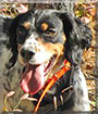 What a stunning feature photo your proud daddy has included with his tribute! The setting is gorgeous, those vibrant fall colors so perfectly complimenting your beautiful, multi-colored and spotted coat! But just look at that million mega watt smile! Now that's the smile of a girl happily doing her thing; hard at work!:cool:
