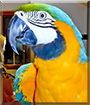 Dearest Lulu, you are absolutely gorgeous! What a stunning Blue and Gold Macaw you are, full of brilliant colors and markings. And what a terrifilc story you have to tell! You were dumped off at the door of an animal shelter, where you were taken in by just the right people who knew how to care for you and train you! What a funny story of how they'd sometimes give you french fries, and before you started in on them you'd ask "Is it good?" You've since added to your vocabulary, making really odd squealing noises when you're happy. You also enjoy butt-rubs and bobbing your head up and down a lot. Now you've all been together for some seven years, and you and Harley the macaw are best friends! You all love each other very much, don't you. What a wonderful love-filled home you share!