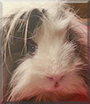 Dearest Wolly, you are wonderful indeed, absolutely adorable! You're such a cute little Guinea Pig with that long, soft-looking grey and white coat and that sweet face with the cute pink nose and those lovely big blue eyes. You have the most delightful personality, too! You're very sweet and clever. You understand your name, and you answer "Quiek, quiek!" when your dear young friend calls your name. You enjoy climbing over the small guinea pig houses, stones, and little branches. You also like hopping around in your nice cage. You live in a big guinea pig family with your three dear brothers, Jason, Wicky, and Purple. Your friend and his/her father built you all a great treehouse in the garden. Your favorite activity is eating, and you also like to cuddle with your friend, who strokes your and combs your nice long fur every day. You all love each other very much, don't you. What a wonderful love-filled home you share!